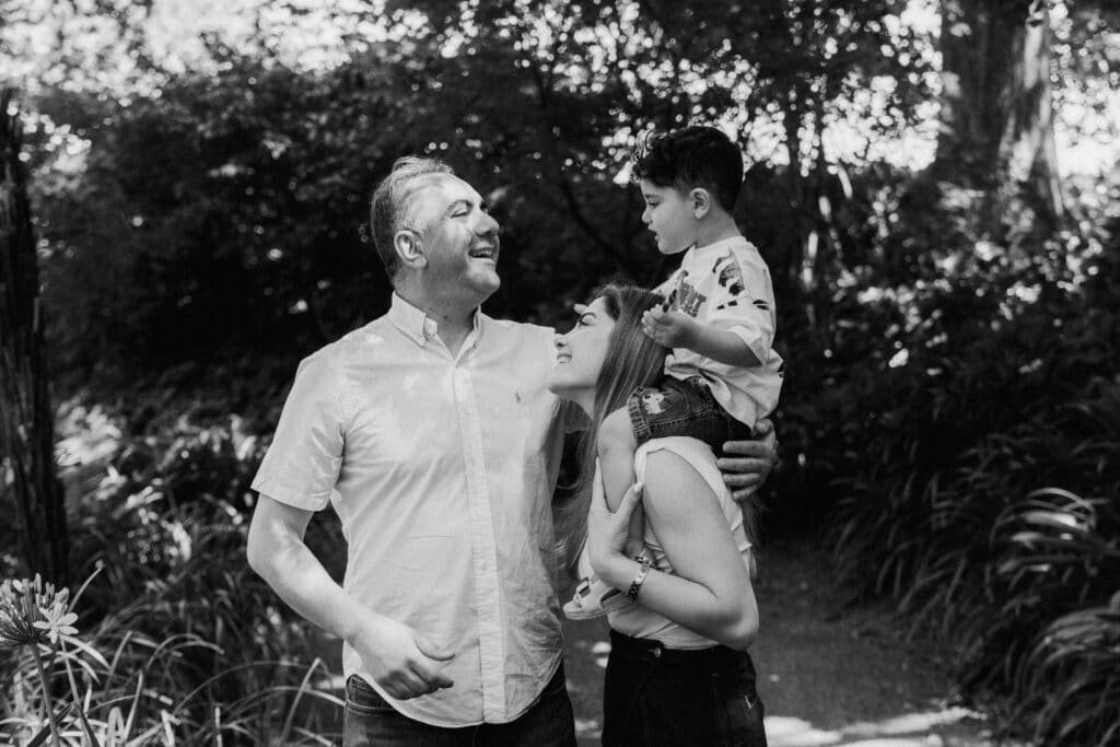 Nasim and Ali brought their son Adrian along to Woodlands Estate in Gordonton, and Ali’s parents came too. We spent most of our time in the back wooded paddock because it gave us the best mix of soft light, space to run around, and a relaxed vibe where kids can forget about the camera.