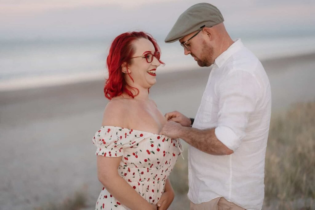 So my car broke down and I got stuck in Papmoa for a week. I was supposed to be doing a couple shoot with Hollie and Ethan at McLaren falls but couldn’t get there. Luckily they were happy to drive a bit further an meet me at Papmoa beach, where I was staying. It turned out to be a beautiful evening and we had a relaxed shoot in the dunes and low tide area. A bit of fun and a bit of romance… a great photoshoot!