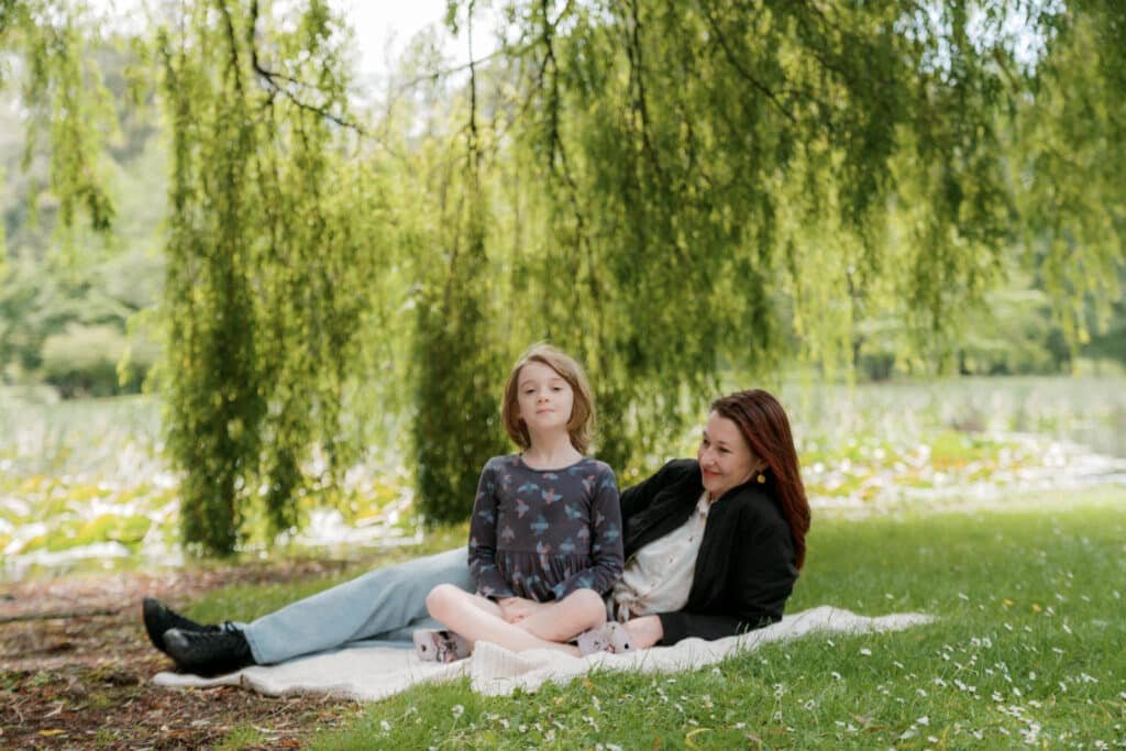 Kate and her daughter Rey met me at Lake Te Ko Utu in Cambridge in late spring (November). We were shooting around midday, which usually means harsh light… unless you work with it. So we did what actually makes people look good: we stuck to shaded pockets, used the trees like a giant softbox, and let the background stay calm and natural.
