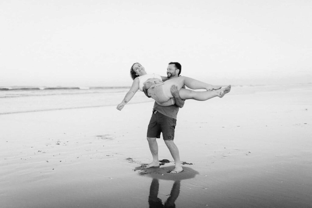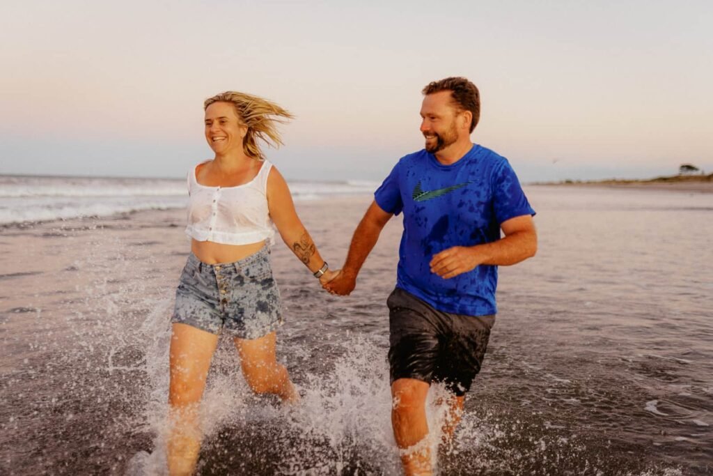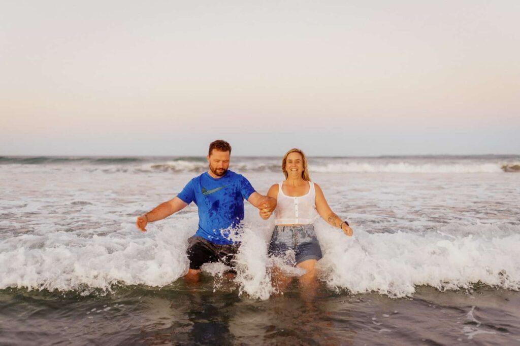 A fun sunset shoot with Rachel and Marty. They have been hanging out for a bit and while nervous about it… seemed like it was time to get some photos. We had a little fun and games to ease into it, then I was thinking some romantic shots. And will all epic beach shoots… you have to end up in the water aye!
